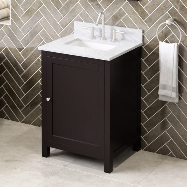Jeffrey Alexander VKITAST24ESWCR 24" Espresso Astoria Vanity, White Carrara Marble Vanity Top, undermount rectangle bowl