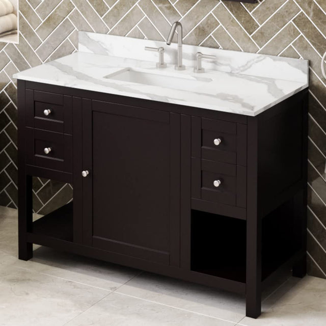 Jeffrey Alexander VKITAST48ESCQR 48" Espresso Astoria Vanity, Calacatta Vienna Quartz Vanity Top, undermount rectangle bowl