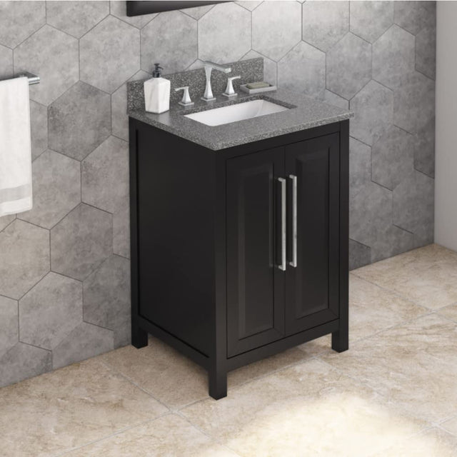 Jeffrey Alexander VKITCAD24BKBOR 24" Black Cade Vanity, Boulder Cultured Marble Vanity Top, undermount rectangle bowl