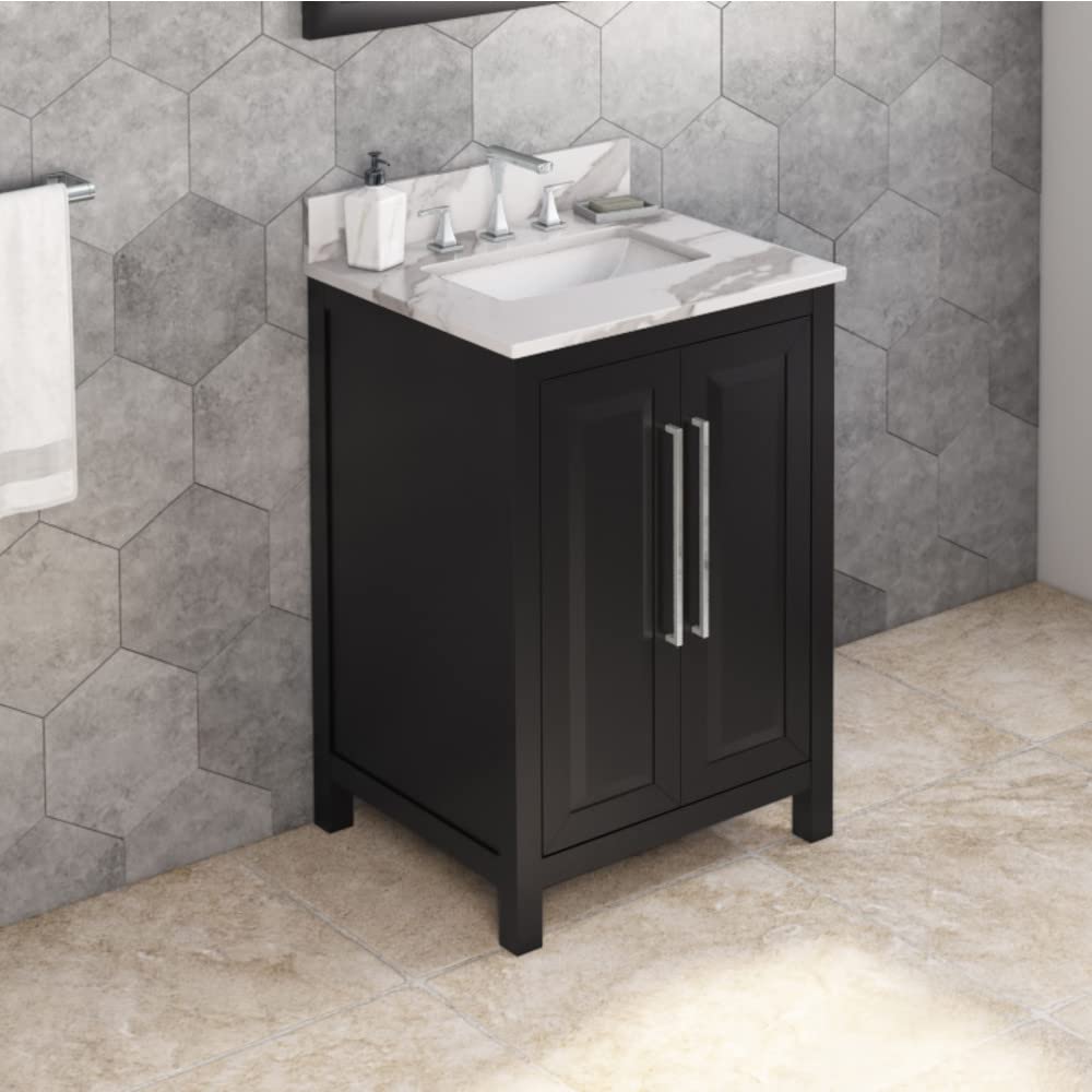 Jeffrey Alexander VKITCAD24BKCQR 24" Black Cade Vanity, Calacatta Vienna Quartz Vanity Top, undermount rectangle bowl