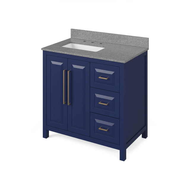 Jeffrey Alexander VKITCAD36BLSGR 36" Hale Blue Cade Vanity, left offset, Steel Grey Cultured Marble Vanity Top, undermount rectangle bowl