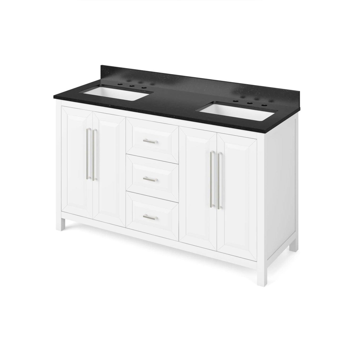 Jeffrey Alexander VKITCAD60WHBGR 60" White Cade Vanity, double bowl, Black Granite Vanity Top, undermount rectangle bowl