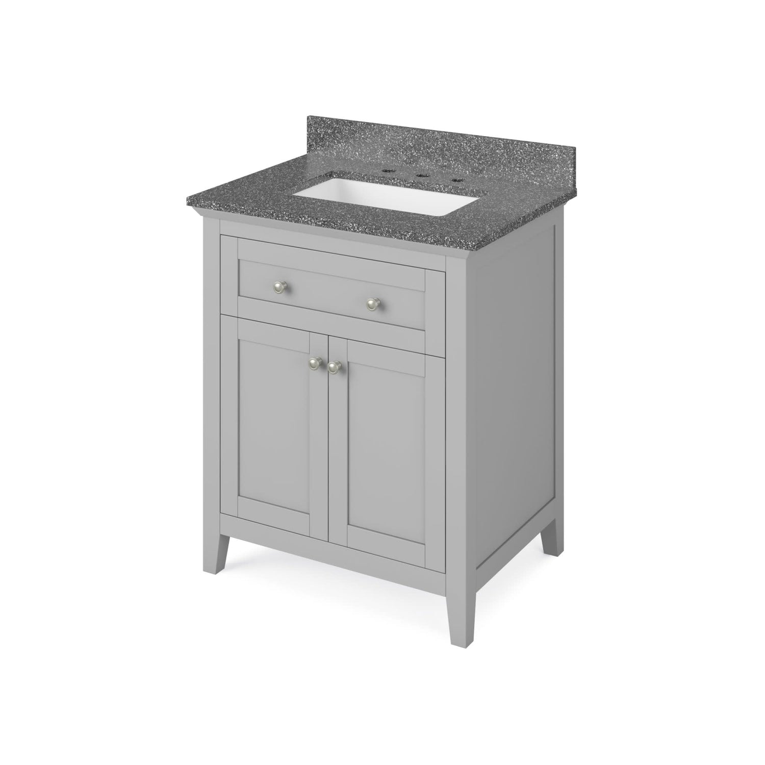 Jeffrey Alexander VKITCHA30GRBOR 30" Grey Chatham Vanity, Boulder Cultured Marble Vanity Top, undermount rectangle bowl