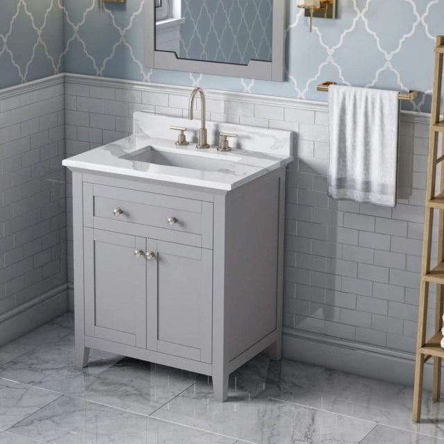 Jeffrey Alexander VKITCHA30GRCQR 30" Grey Chatham Vanity, Calacatta Vienna Quartz Vanity Top, undermount rectangle bowl