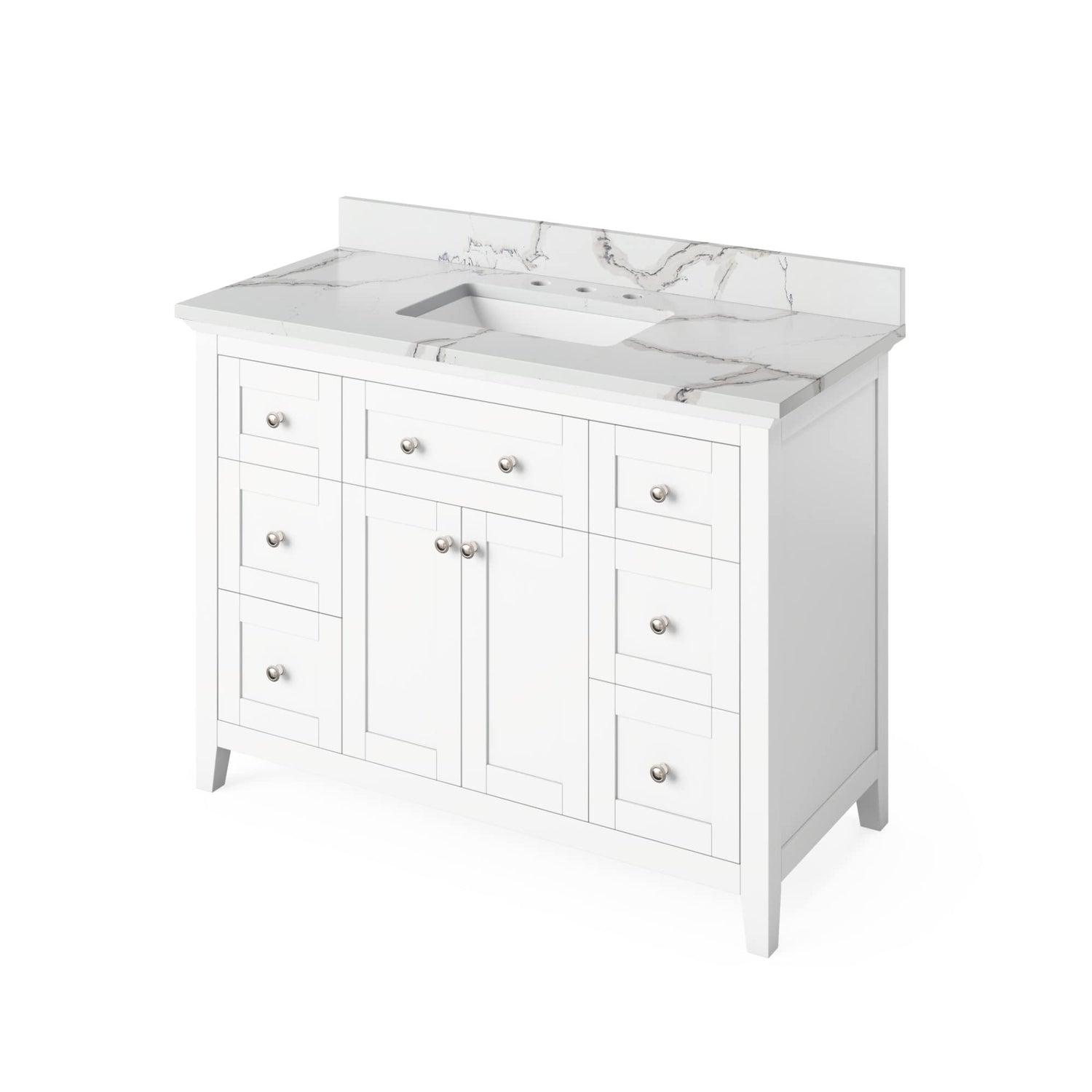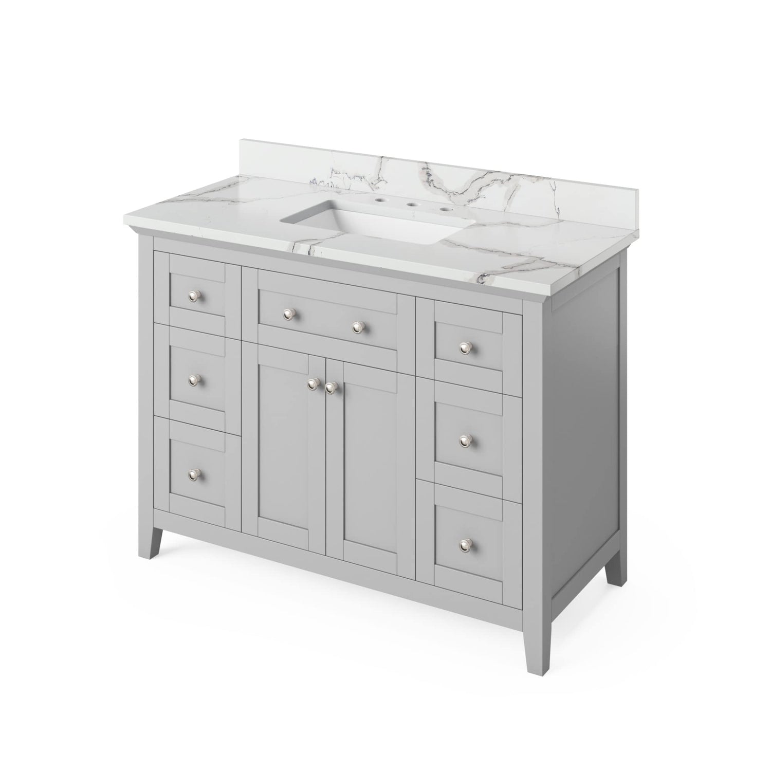 Jeffrey Alexander VKITCHA48WHSGR 48" White Chatham Vanity, Steel Grey Cultured Marble Vanity Top, undermount rectangle bowl