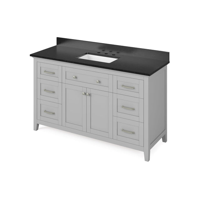 Jeffrey Alexander VKITCHA60SGRBGR 60" Grey Chatham Vanity, Black Granite Vanity Top, undermount rectangle bowl