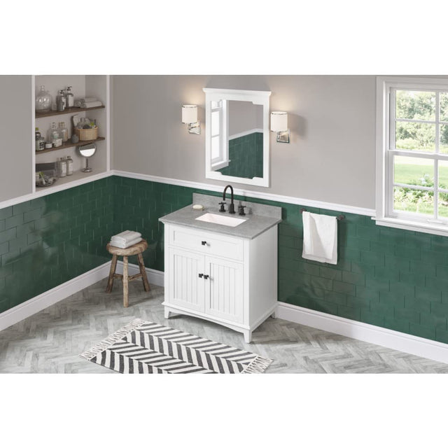 Jeffrey Alexander VKITSAV36WHSGR 36" White Savino Vanity, Steel Grey Cultured Marble Vanity Top, undermount rectangle bowl