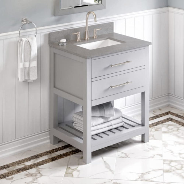Jeffrey Alexander VKITWAV30GRSGR 30" Grey Wavecrest Vanity, Steel Grey Cultured Marble Vanity Top, undermount rectangle bowl