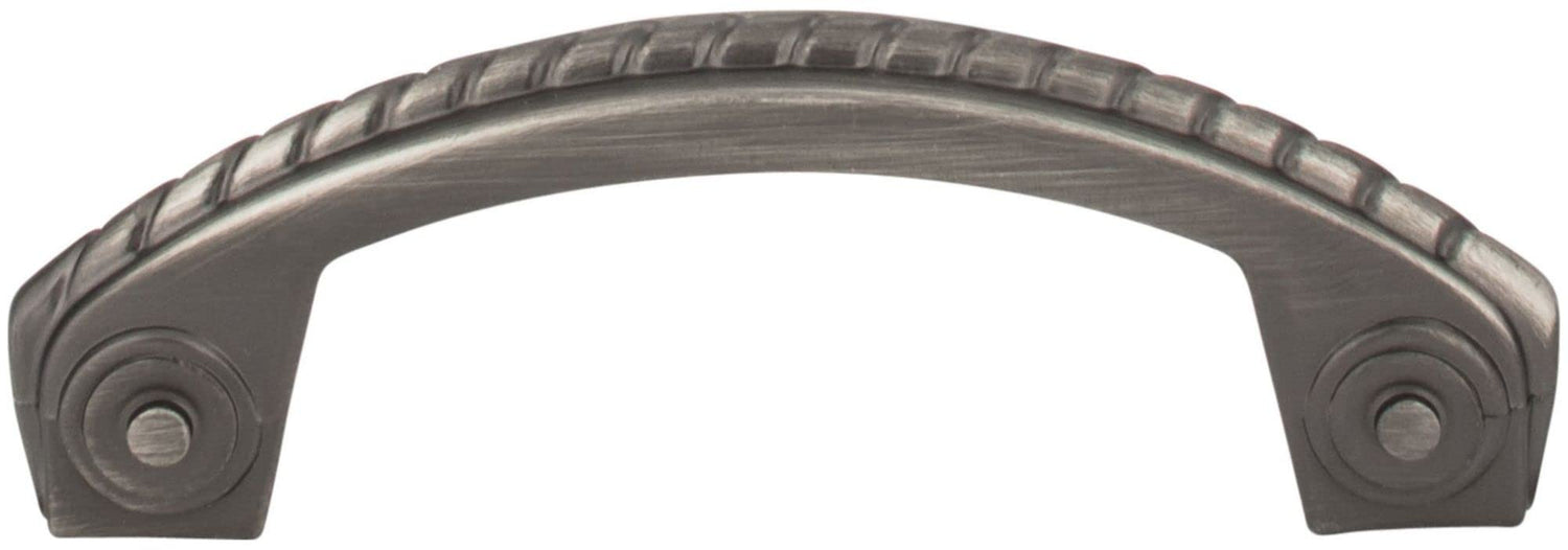 3-3/4" Overall Length Rope Detail Cabinet Pull. Holes are 3" center-to-center. Packaged with two 8-32 x 1" and two Break-away screws. Finish: Brushed Black Nickel