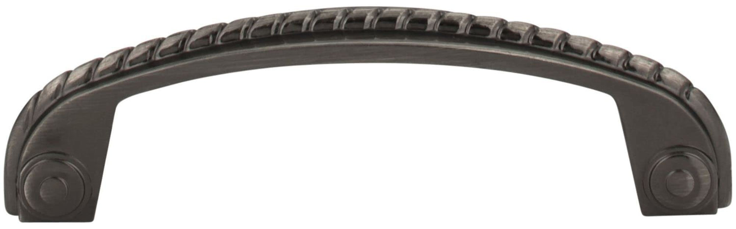 4-1/2" Overall Length Rope Detail Cabinet Pull. Holes are 96 mm center-to-center. Packaged with two 8-32 x 1" and two Break-away screws. Finish: Brushed Black Nickel