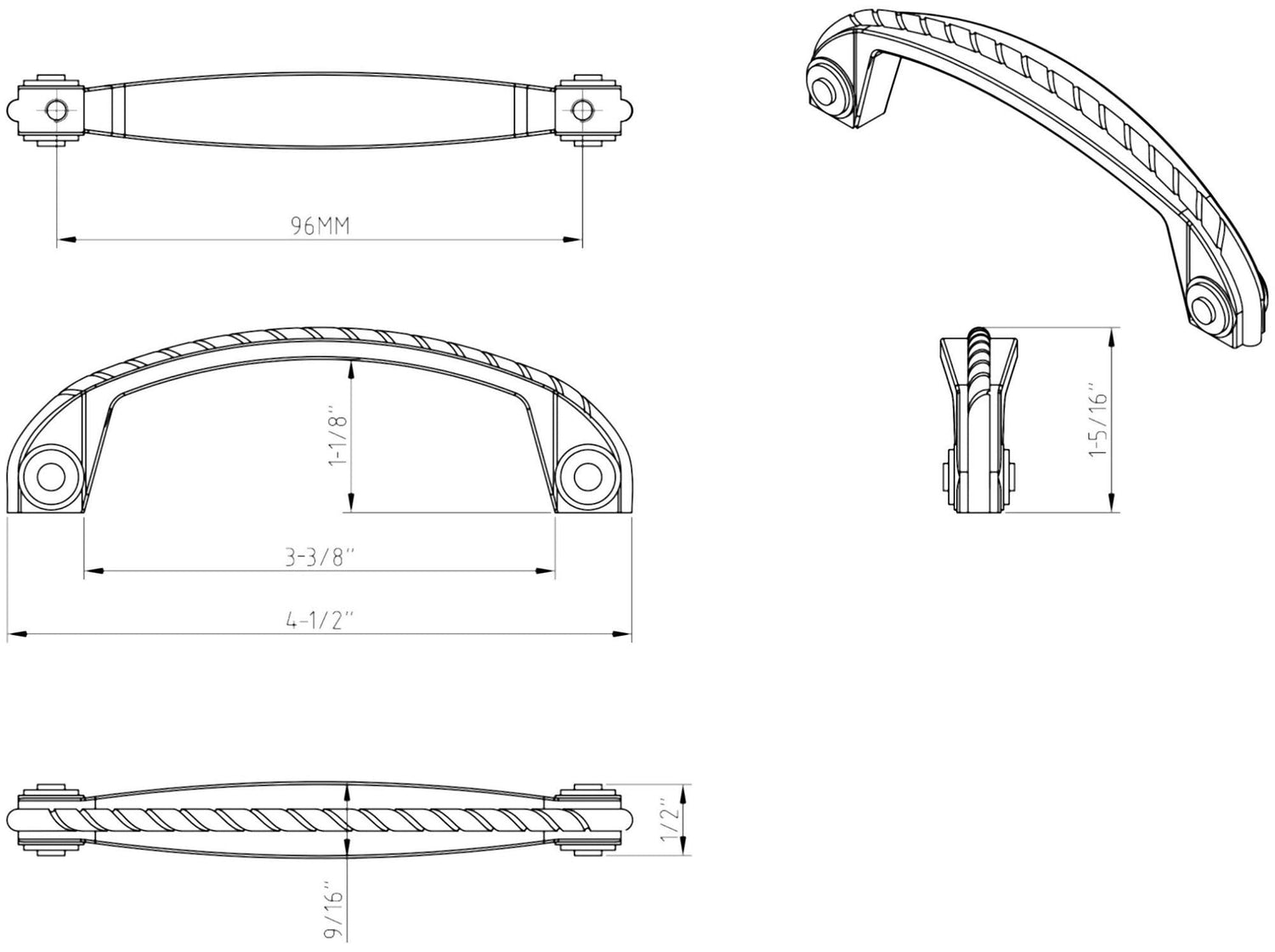 4-1/2" Overall Length Zinc Cabinet Pull with Rope Detail. Holes are 96mm center-to-center. Packaged with two 8-32 x 1" screws. Finish: Brushed Pewter. About Hardware Resources Elements, Jeffrey Alexander, and more great names in home hardware all part of the incredible Hardware Resources. They're the fastest-growing manufacturer of cabinet hardware in the US, building their brands on quality, integrity, and reliability. You'll find traditional, modern, and every style in between represented in a variety of proven materials. Die-cast zinc construction. Cabinet pull with rope detail. Available in various finishes. Includes mounting screws for easy installation. Choose from the available size options.
