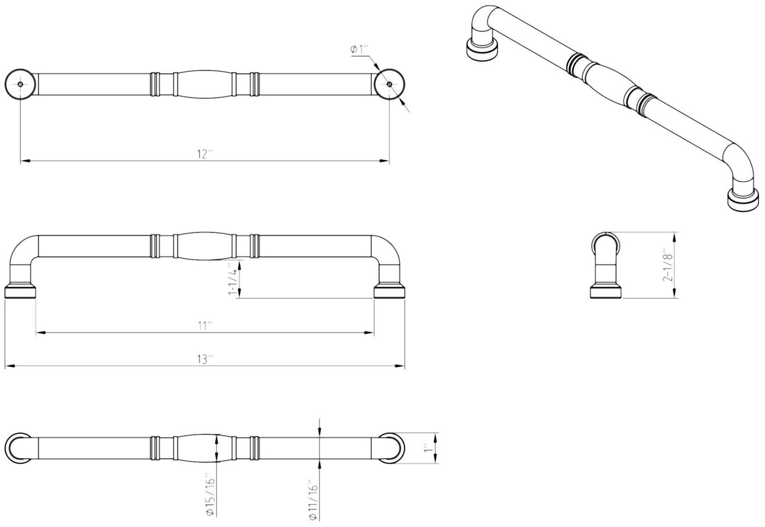 13" Overall Length Turned Appliance Pull. Holes are 12" center-to-center. Packaged with two 8-32 x 1" screws. Finish: Brushed Pewter