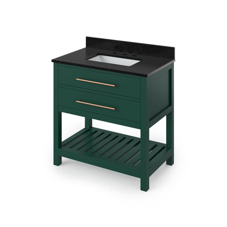 Jeffrey Alexander VKITWAV36GNBGR 36" Forest Green Wavecrest Vanity, Blac...