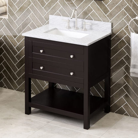 Jeffrey Alexander VKITCHA30CHWCR 30" Chocolate Chatham Vanity, White Car...