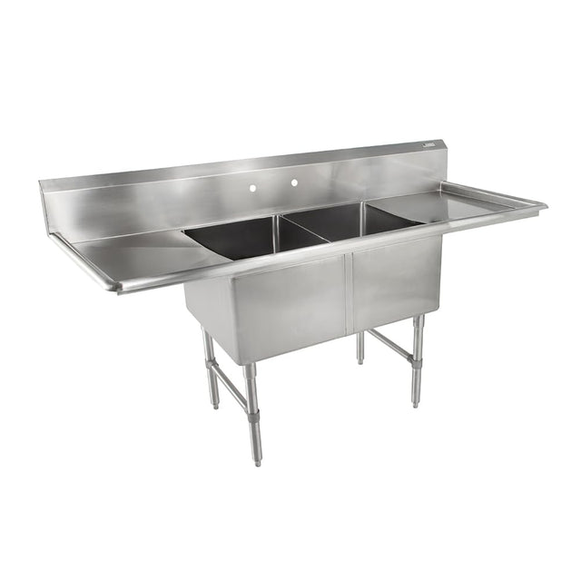 The John Boos B-Series is our choice for high quality and affordable compartment sinks. These sinks are imported and available in standard sizes to fit a variety of spaces within your kitchen. The 16GA type 300 stainless steel construction includes two fabricated sink bowls, two drain boards, and stainless steel gussets/legs with side bracings for extra stability. Available in a variety of sizes and configurations. NSF & CSA certified._Overview Sink Bowl: 2 Compartment 16GA Type 300 Stainless Steel 14" Deep Fabricated Bowl All Corners, Both Vertical And Horizontal, Coved At 3/4" Radius To Meet NSF Certification Bottom Of Sink Bowls Are Formed For Drainage And Includes A 3-1/2" Diameter Die Stamped Opening Sink Deck: 2 Drainboard (Available in LH And RH) 16GA Type 300 Stainless Steel 10" Boxed Backsplash With 2" Return To Wall at 45° And 1" Turned Down Rear Lip All Corners Are Coved 1/4" Radius, Welded, Ground And Polished Into A Sanitary Single Piece Stainless Steel Legs & Adjustable Bracing: Legs Are Standard 1-5/8" Diameter Stainless Steel Tube Legs Attach To The Sink With Stainless Steel Gussets 1-1/4" Diameter Tubular Bracing On Front And Sides To Prevent Interference With Plumbing Adjustable Stainless Steel Bullet Feet For Leveling On Uneven Floors Faucet Holes: 8" O.C. Splash Mount 36" Working Height NSF Certified CSA Certified_Stainless Steel Care & Maintenance Click To View Spec Sheet (2B-2D_SPEC) View California Prop 65 Warning Message_Description Model # UPC # Weight Carton Retail Price 16GA Compartment Sinks, 2-Bowl, 2 Drainboard, 14" Deep Bowl (B-SERIES) - 16" x 20" x 14" | 18 2B16204-2D18 662969210991 98 lbs 71.25X25.5X27.25 $3,780.00 16GA Compartment Sinks, 2-Bowl, 2 Drainboard, 14" Deep Bowl (B-SERIES) - 18" x 18" x 14" | 18 2B184-2D18 662969158989 98 lbs 75.25X23.5X27.25 $3,818.00 16GA Compartment Sinks, 2-Bowl, 2 Drainboard, 14" Deep Bowl (B-SERIES) - 18" x 24" x 14" | 18 2B18244-2D18 662969158941 112 lbs 75.25X29.5X27.25 $4,484.00 16GA Compartment Sinks, 2-Bowl, 2 Drainboard, 14" Deep Bowl (B-SERIES) - 24" x 24" x 12" | 24 2B244-2D24 662969159092 136 lbs 99.25X29.5X27.25 $5,321.00 2-16X20X14 W/18"DB L&R 16GA