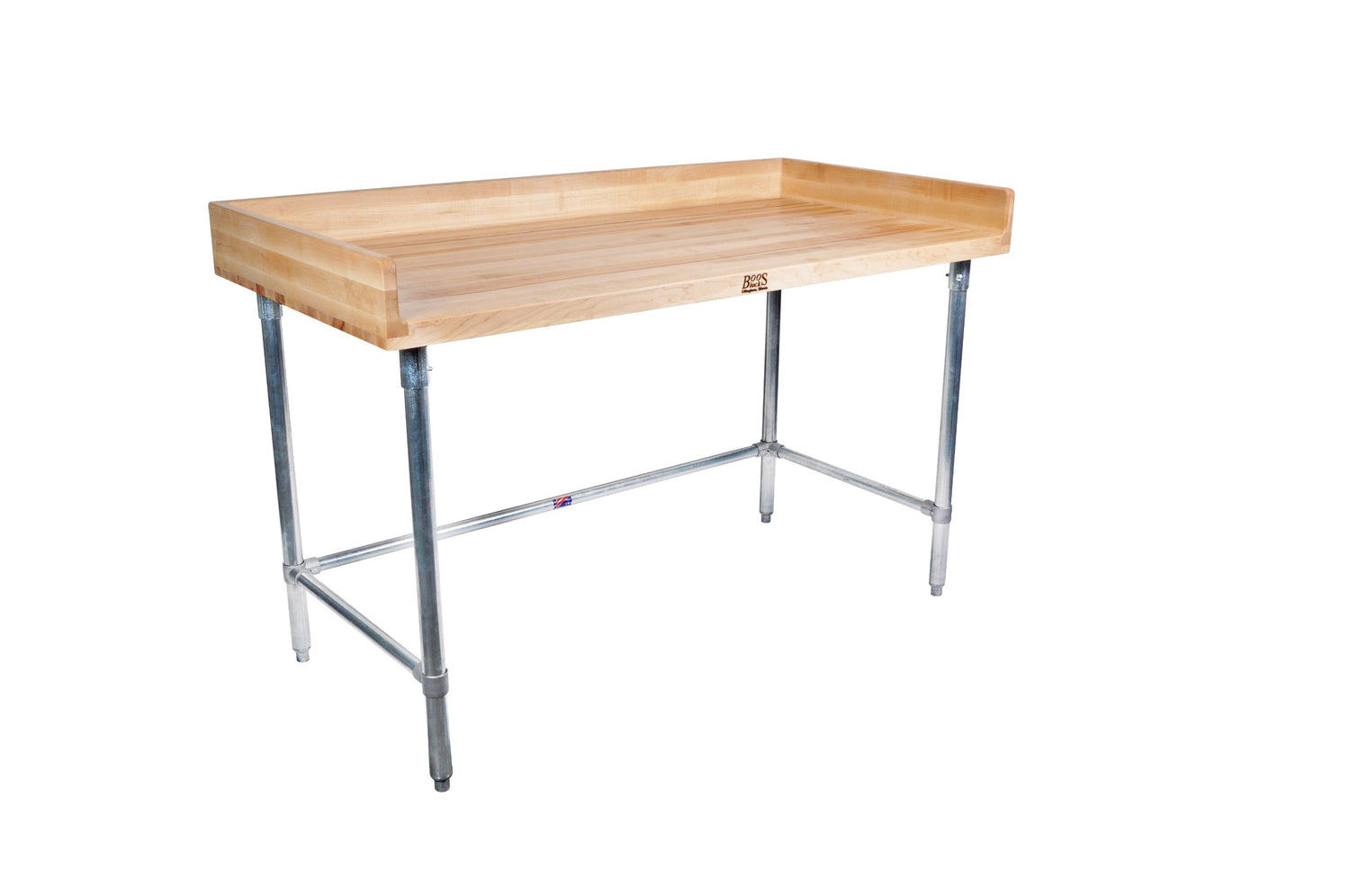 John Boos DSB07 Maple Wood Top Stallion Work Table, 4" Coved Riser Rear and Sides, 1-3/4" Thick, Stainless Steel Legs, Adjustable Bracing, 60" Length x 30" Width