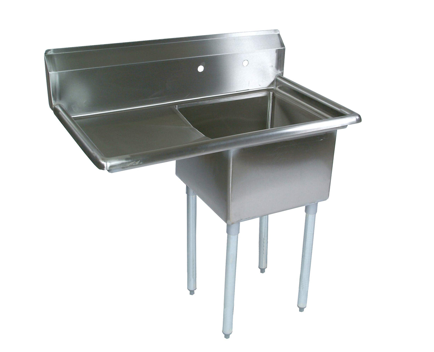 One compartment sink. 18 Gauge 300 series stainless steel bowl and deck. Galvanized legs and plastic bullet feet. Bowl measures 18" length by 18" width by 12" depth. Measures 38-1/2" length by 23-1/2" width. 1 COMPARTMENT 18X18X12D W/18DB LEFT