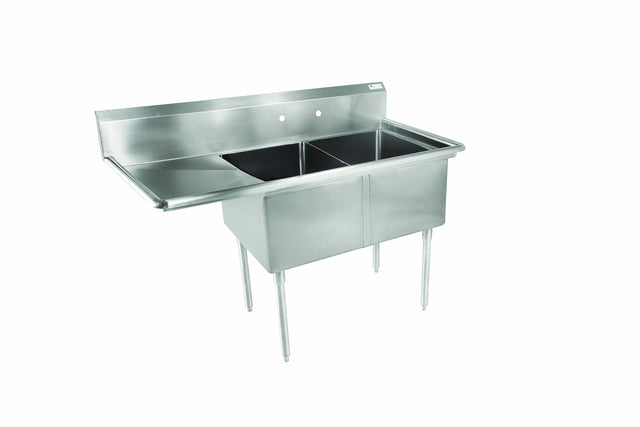 John Boos E2S8-1620-12L18 E Series Stainless Steel Sink, 12" Deep Bowl, 2 Compartment, 18" Left Hand Side Drainboard, 52-1/2" Length x 25-1/2" Width