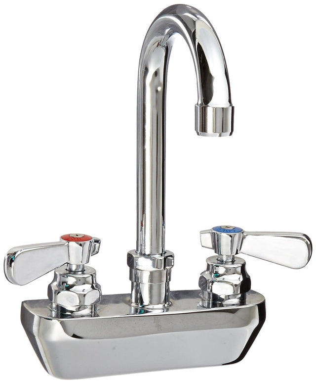 Low-Lead heavy duty gooseneck faucet. For ProBowl sinks. Environmentally friendly. Less than 25 percent lead within brass alloy content for healthier drinking water. 4" On-center, 1/4 turn, 3-1/2" spout, splash mount. 4"OC SM FAUCET-3.5"GN SPOUT LOW