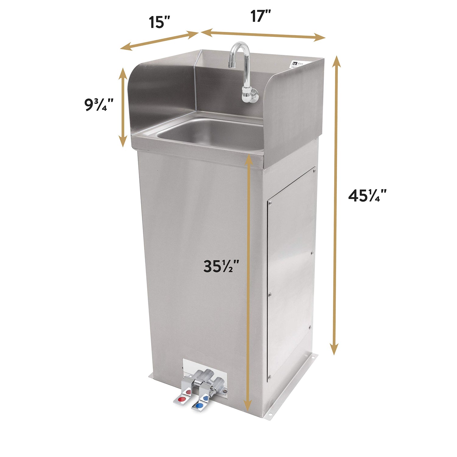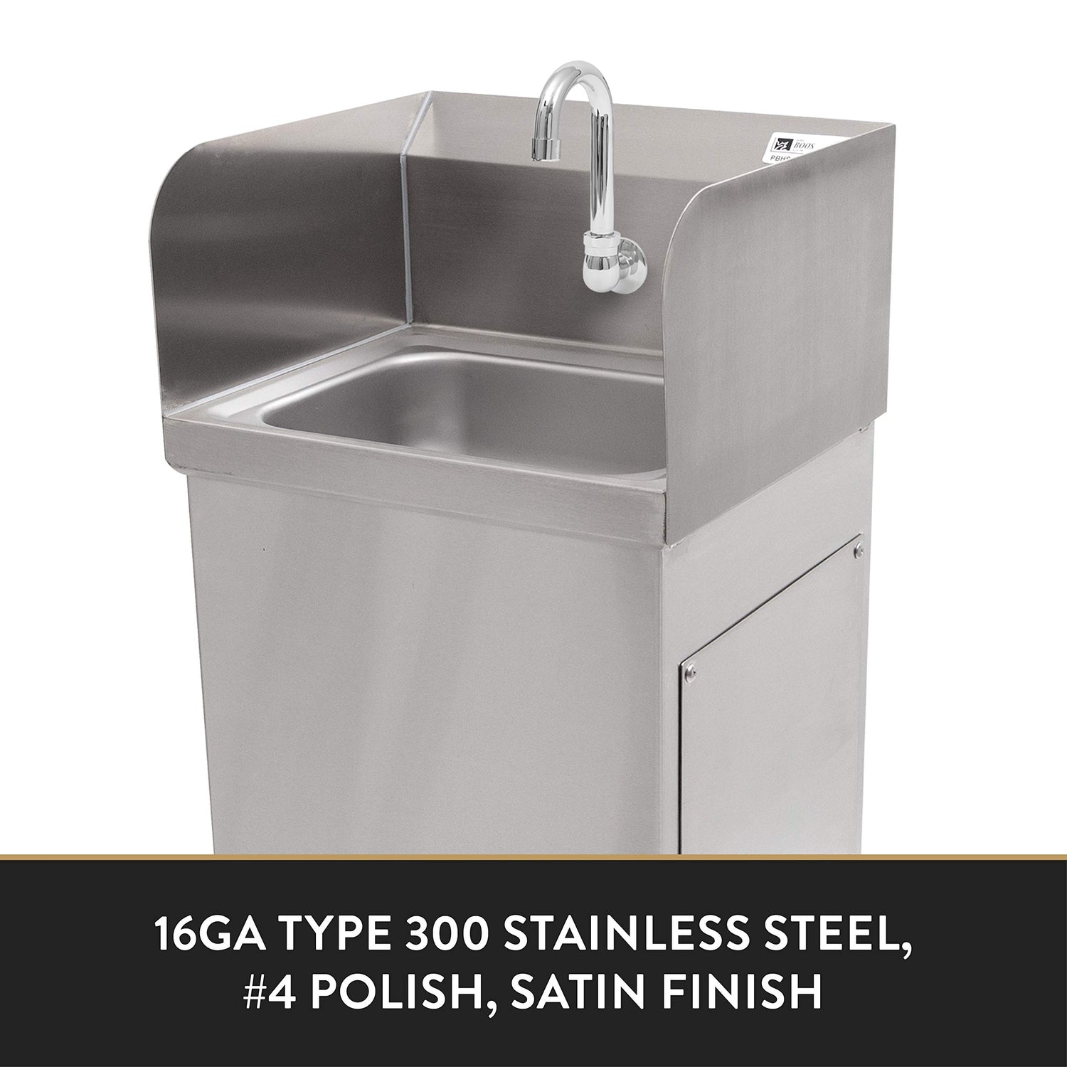 John Boos PBHS-F-1410-SSLR Hands-Free Pedestal Hand Washing Sink 14" W x 10" Front to Back 5" Deep Bowl, with Side Splashes, 1 Centered Splash Mount Faucet Hole, Goose Neck Spout and Foot Valves
