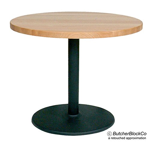 John Boos RTM-48 48" Round Maple Butcher Block Cafe Table, 1.75" Thick, Black Pedestal & Disc Base