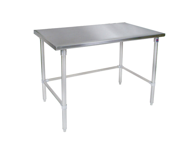 This John Boos work table comes with a thick, sturdy 16 gauge stainless steel top. The base’s bracing and under shelf are composed of 16 gauge galvanized steel so that these work tables are as sturdy as they are stylish. These tables come with adjustable bullet feet for use on uneven surfaces and are perfect for use in commercial, institutional - and even residential - kitchens. This table is built to comply with the National Sanitation Foundation NSF/ANSI Stand 2 for food equipment. It ships knocked down, but is easy to assemble. Tools for assembly are sold separately. 48" x 24". 16GA 48X36 FLAT W/ADJ SS SHF KD