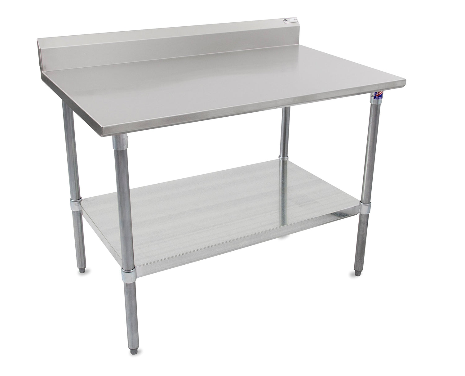 John Boos ST6R5-3060GSK Stallion Stainless Steel 5" Riser Top Work Table with Adjustable Galvanized Lower Shelf and Legs, 60" Length x 30" Width