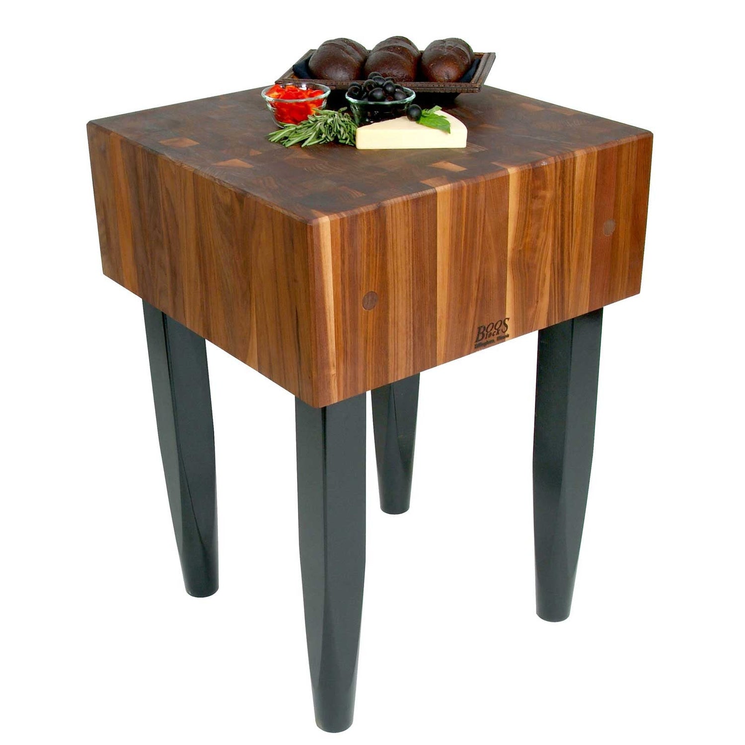 John Boos WAL-PCA1 Solid Walnut Block with Painted Legs, 18 W x D 10 H (34 Overall) WAL PCA BLOC 18X18X10CRM BLACK LEGS