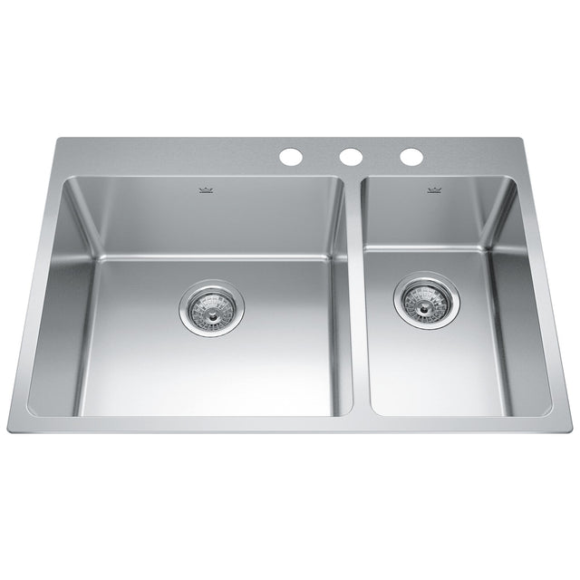 KINDRED BCL2131R-9-3N Brookmore 31-in LR x 20.9-in FB x 9-in DP Drop in Double Bowl Stainless Steel Sink In Commercial Satin Finish