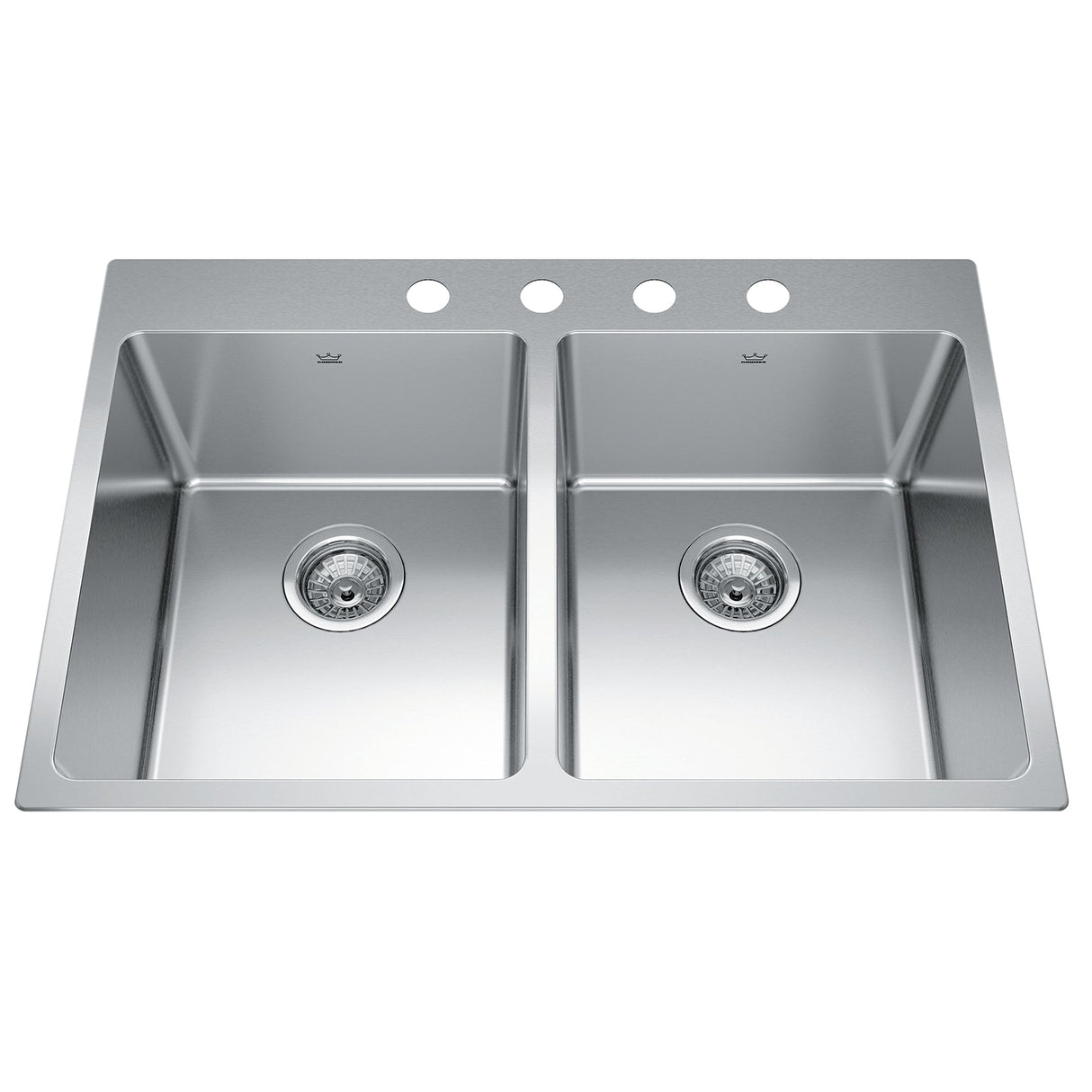KINDRED BDL2131-9-4N Brookmore 31-in LR x 20.9-in FB x 9-in DP Drop in Double Bowl Stainless Steel Sink In Commercial Satin Finish