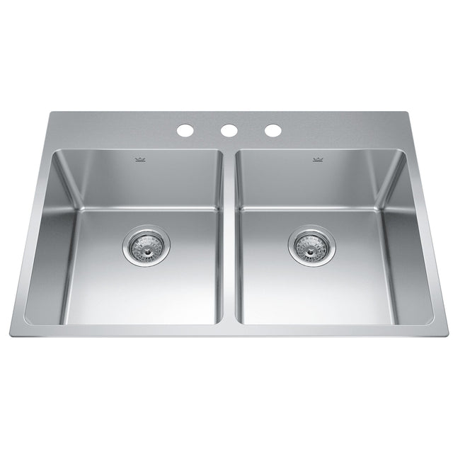 KINDRED BDL2233-9-3N Brookmore 32.9-in LR x 22.1-in FB x 9-in DP Drop in Double Bowl Stainless Steel Sink In Commercial Satin Finish