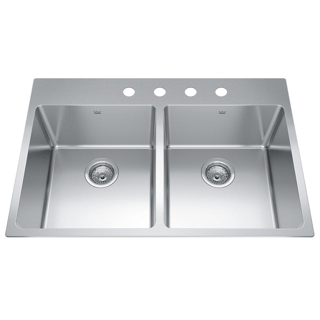 KINDRED BDL2233-9-4N Brookmore 32.9-in LR x 22.1-in FB x 9-in DP Drop in Double Bowl Stainless Steel Sink In Commercial Satin Finish