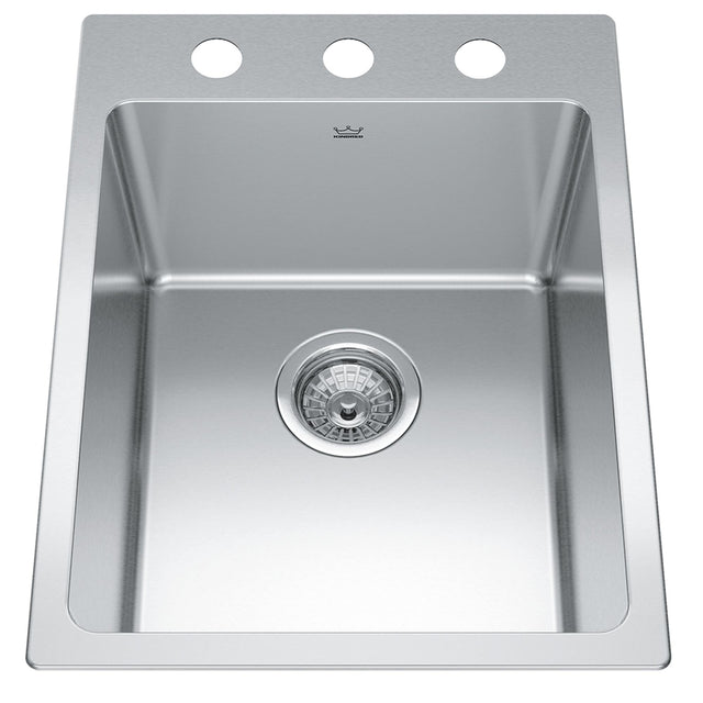 KINDRED BSL2116-9-3N Brookmore 16-in LR x 20.9-in FB x 9-in DP Drop in Single Bowl Stainless Steel Sink In Commercial Satin Finish