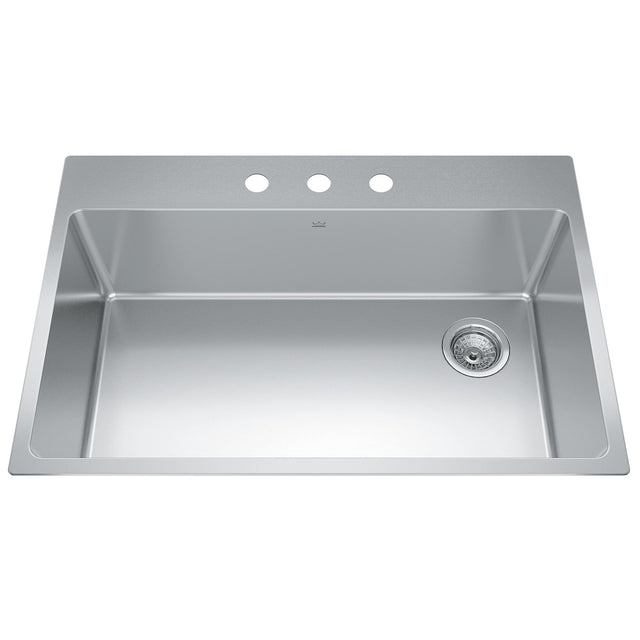 KINDRED BSL2233-9-3N-OW Brookmore 32.9-in LR x 22.1-in FB x 9-in DP Drop in Single Bowl Stainless Steel Sink In Commercial Satin Finish