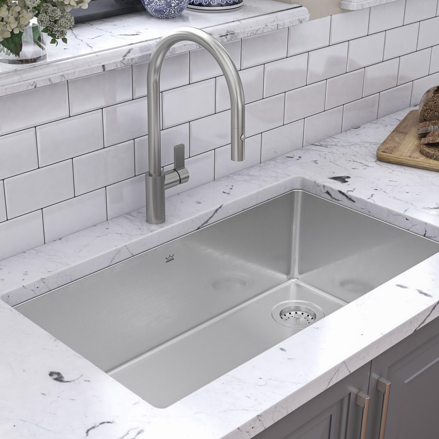 KINDRED BSU1832-9N-OW Brookmore 32.5-in LR x 18.2-in FB x 9-in DP Undermount Single Bowl Stainless Steel Sink In Commercial Satin Finish