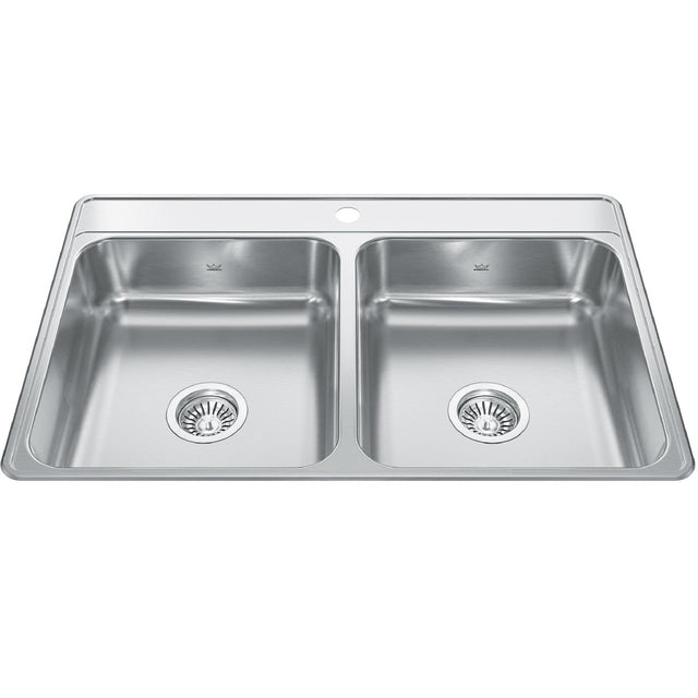KINDRED CDLA3322-6-1N Creemore 33-in LR x 22-in FB x 6-in DP Drop In Double Bowl 1-Hole Stainless Steel Sink In Commercial Satin Finish