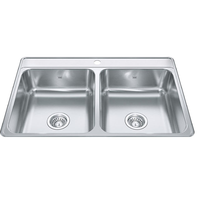 KINDRED CDLA3322-7-1N Creemore 33-in LR x 22-in FB x 7-in DP Drop In Double Bowl 1-Hole Stainless Steel Kitchen Sink In Commercial Satin Finish