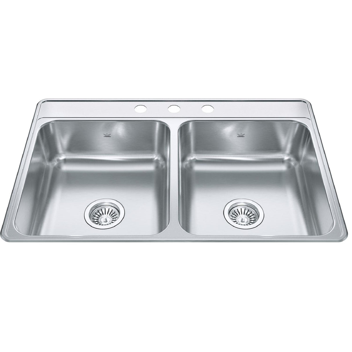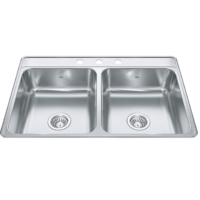 KINDRED CDLA3322-7-3N Creemore 33-in LR x 22-in FB x 7-in DP Drop In Double Bowl 3-Hole Stainless Steel Kitchen Sink In Commercial Satin Finish
