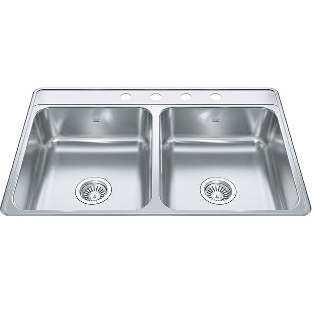 KINDRED CDLA3322-7-4N Creemore 33-in LR x 22-in FB x 7-in DP Drop In Double Bowl 4-Hole Stainless Steel Kitchen Sink In Commercial Satin Finish