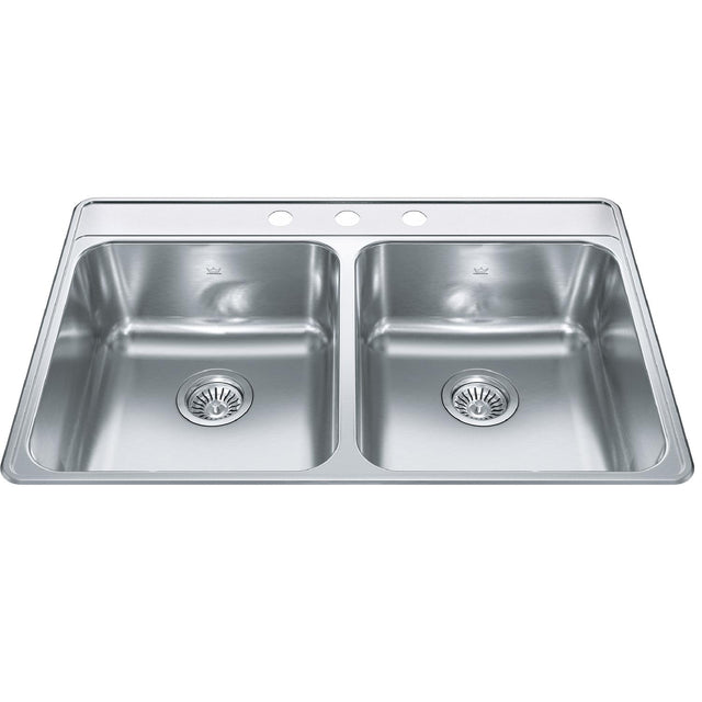 KINDRED CDLA3322-8-3CBN Creemore 33-in LR x 22-in FB x 8-in DP Drop In Double Bowl 3-Hole Stainless Steel Kitchen Sink In Commercial Satin Finish