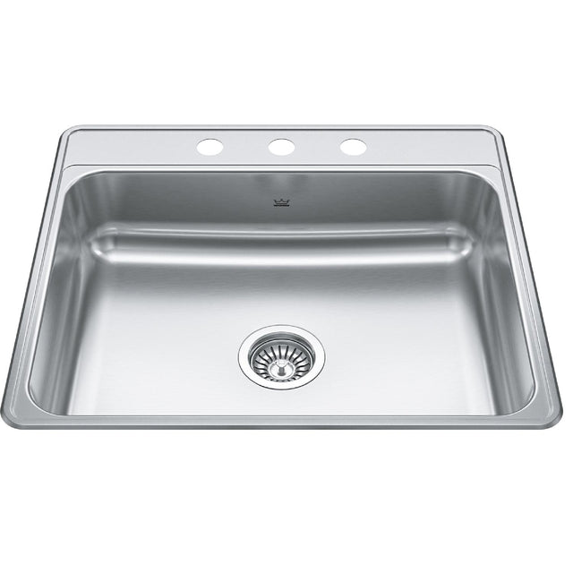 KINDRED CSLA2522-7-3N Creemore 25-in LR x 22-in FB x 7-in DP Drop In Single Bowl 3-Hole Stainless Steel Kitchen Sink In Commercial Satin Finish