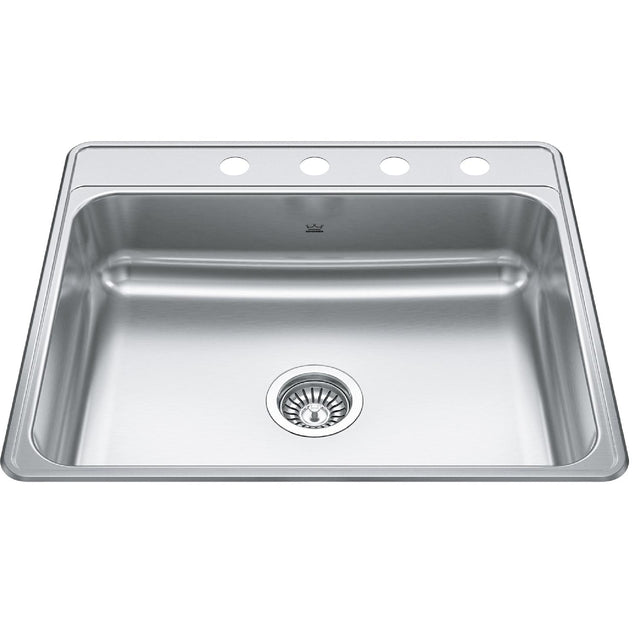 KINDRED CSLA2522-7-4N Creemore 25-in LR x 22-in FB x 7-in DP Drop In Single Bowl 4-Hole Stainless Steel Kitchen Sink In Commercial Satin Finish
