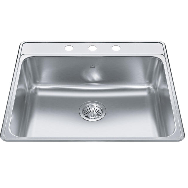 KINDRED CSLA2522-8-3CBN Creemore 25-in LR x 22-in FB x 8-in DP Drop In Single Bowl 3-Hole Stainless Steel Kitchen Sink In Commercial Satin Finish
