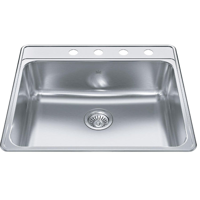 KINDRED CSLA2522-8-4CBN Creemore 25-in LR x 22-in FB x 8-in DP Drop In Single Bowl 4-Hole Stainless Steel Kitchen Sink In Commercial Satin Finish