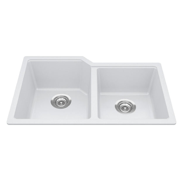 KINDRED MGC2031U-9PWTN Granite Series 30.69-in LR x 19.69-in FB Undermount Double Bowl Granite Kitchen Sink in Polar White In Polar White