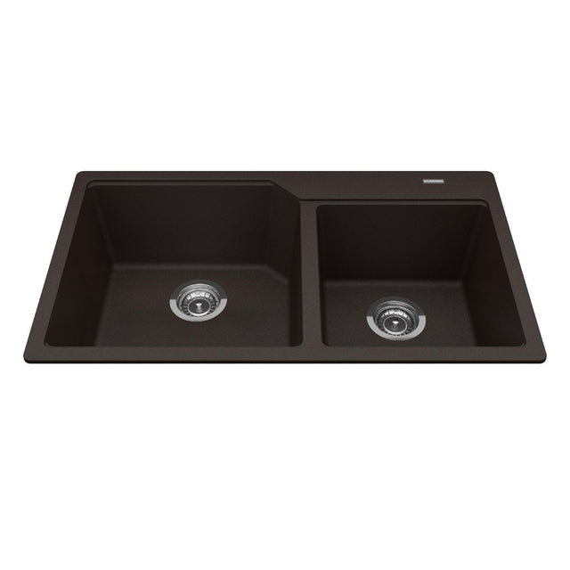 KINDRED MGCM2034-9ESN Granite Series 33.88-in LR x 19.69-in FB x 9.06-in DP Drop In Double Bowl Granite Kitchen Sink In Mocha