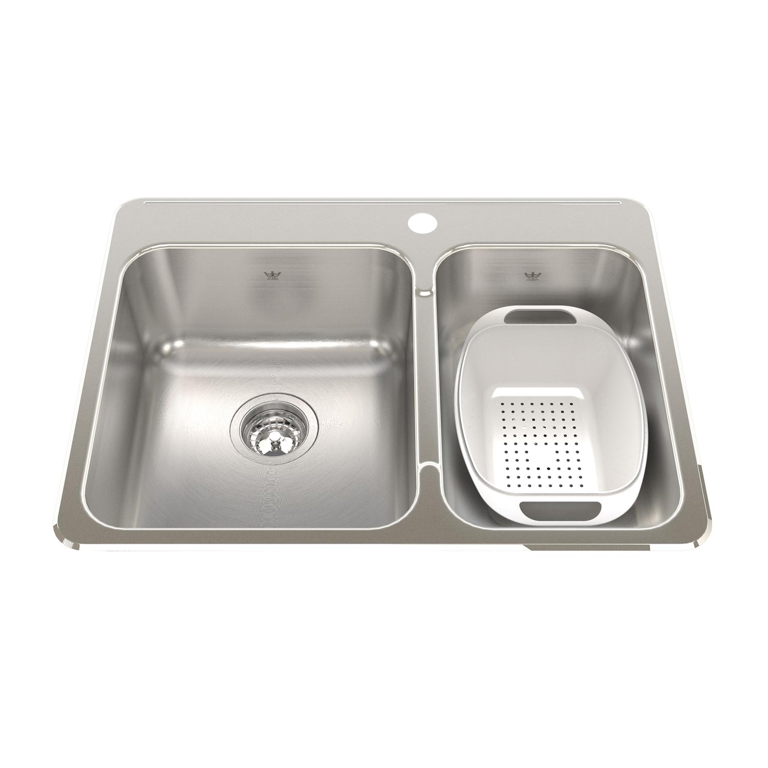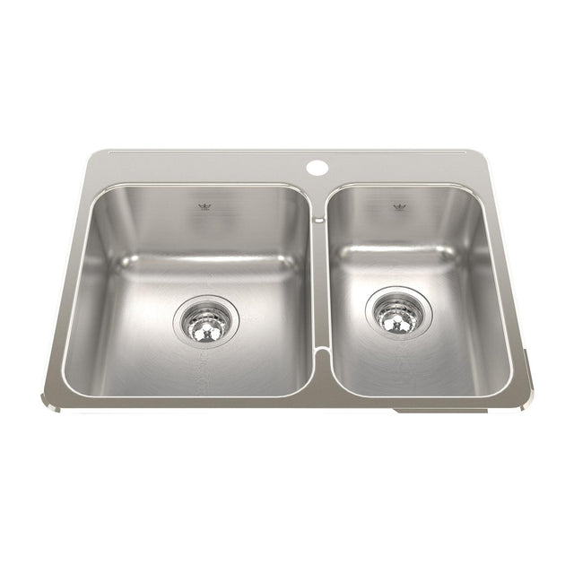 KINDRED QCLA2027R-8-1N Steel Queen 27.25-in LR x 20.56-in FB x 8-in DP Drop In Double Bowl 1-Hole Stainless Steel Kitchen Sink In Satin Finished Bowls with Mirror Finished Rim