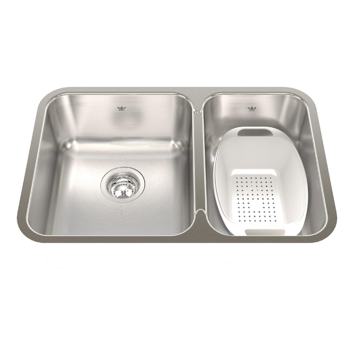 For versatile durability at a great value, a Kindred Steel Queen undermount double bowl sink will crown your kitchen. The double bowl sink allows you to easily use the different bowls for separate purposes from prepping to cleaning. The included colander is perfect for rinsing or draining vegetables, fruit and pasta. The durable finishes ensure Steel Queen undermounts will stand up to everyday tasks.