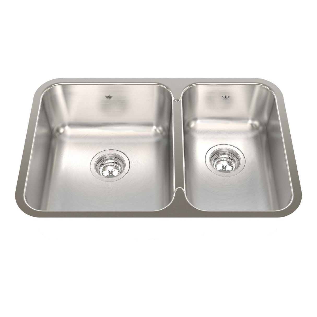 KINDRED QCUA1827R-8N Steel Queen 26.88-in LR x 17.75-in FB x 8-in DP Undermount Double Bowl Stainless Steel Kitchen Sink In Satin Finished Bowls with Silk Finished Rim