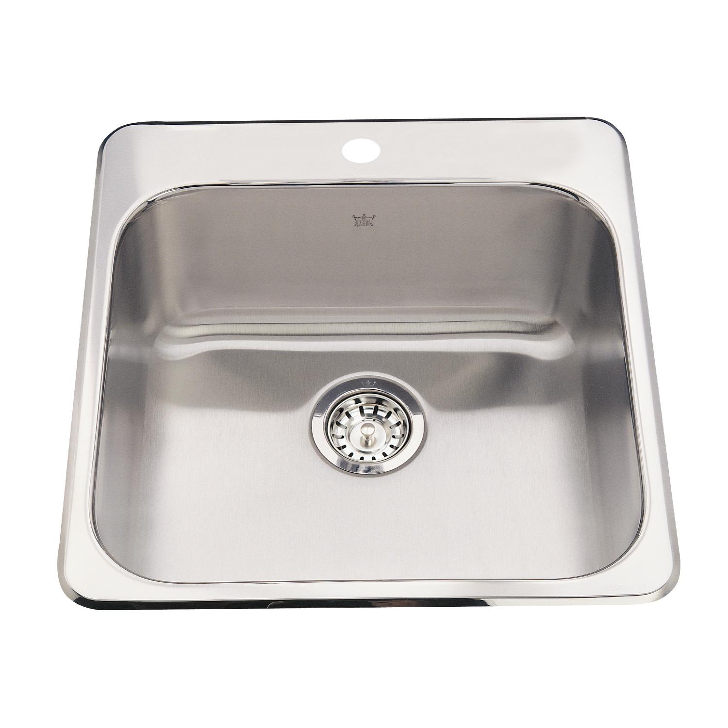 KINDRED QSL2020-7-1N Steel Queen 20-in LR x 20.5-in FB x 7-in DP Drop In Single Bowl 1-Hole Stainless Steel Kitchen Sink In Satin Finished Bowl with Mirror Finished Rim